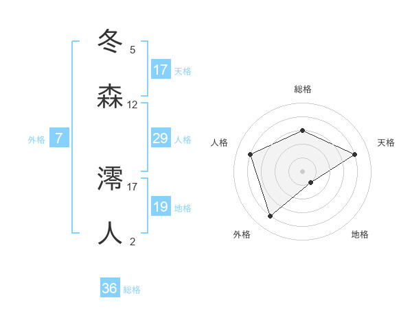 冬森 澪人さんを姓名の画数から五運を鑑定