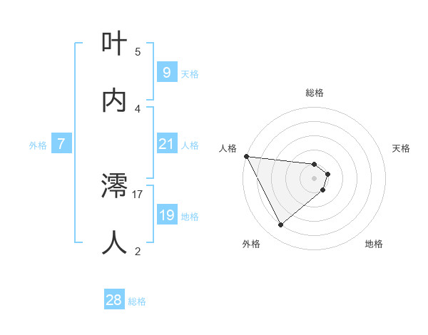 叶内 澪人さんを姓名の画数から五運を鑑定