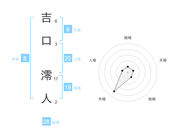 吉口 澪人さんの総格は28画の1点!