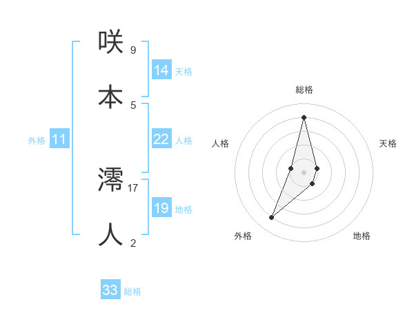 咲本 澪人さんの総格は33画の4点!