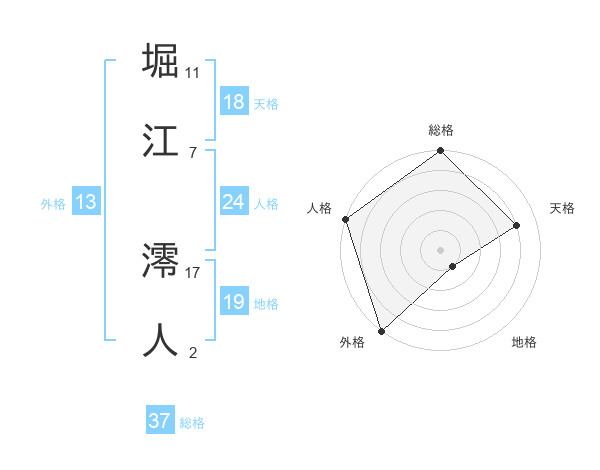 堀江 澪人さんの総格は37画の5点!