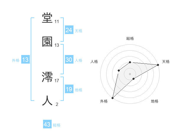 堂園 澪人さんの外格は13画の5点!