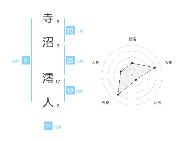 寺沼 澪人さんの天格は15画の4点!