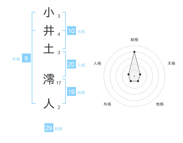 小井土 澪人さんの総格は29画の4点!