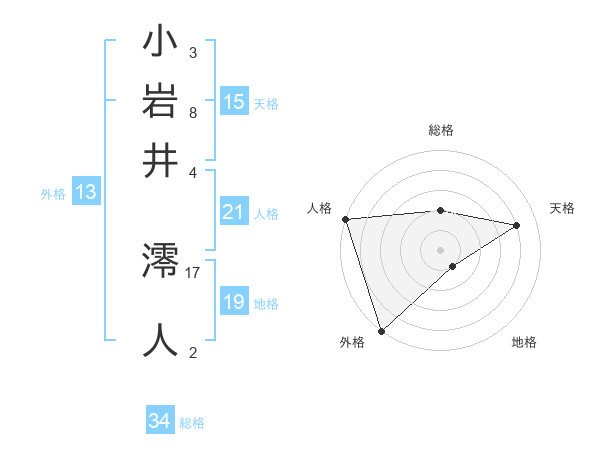 小岩井 澪人さんを姓名の画数から五運を鑑定