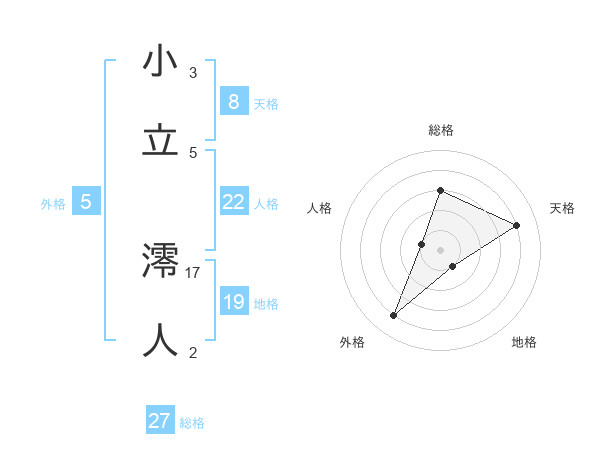 小立 澪人さんの総格は27画の3点!