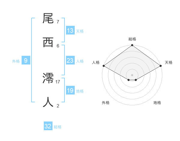 尾西 澪人さんの総格は32画の5点!