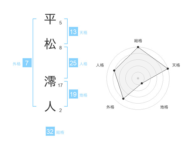 平松 澪人さんの総格は32画の5点!