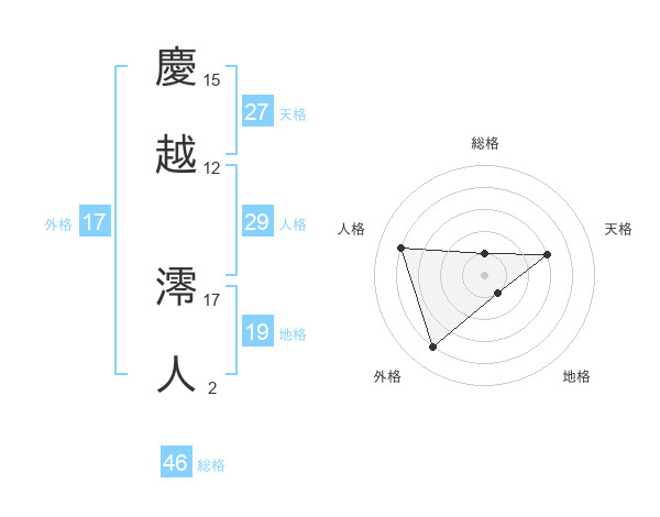 慶越 澪人さんを姓名の画数から五運を鑑定