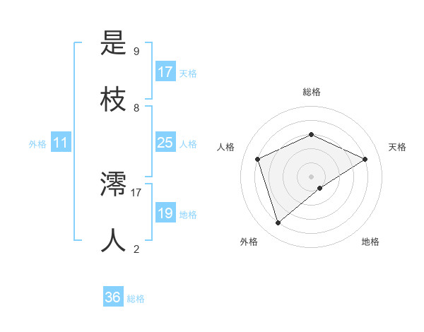 是枝 澪人さんの外格は11画の4点!