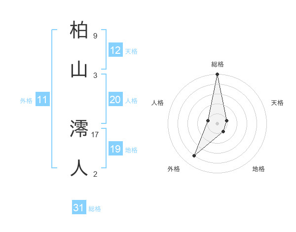 柏山 澪人さんの総格は31画の5点!
