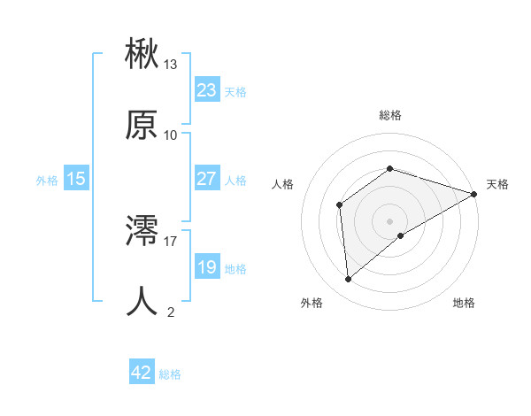 楸原 澪人さんの総格は42画の3点!