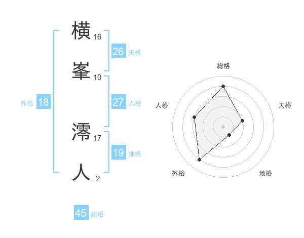 横峯 澪人さんの総格は45画の4点!