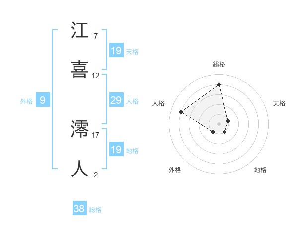 江喜 澪人さんの総格は38画の4点!