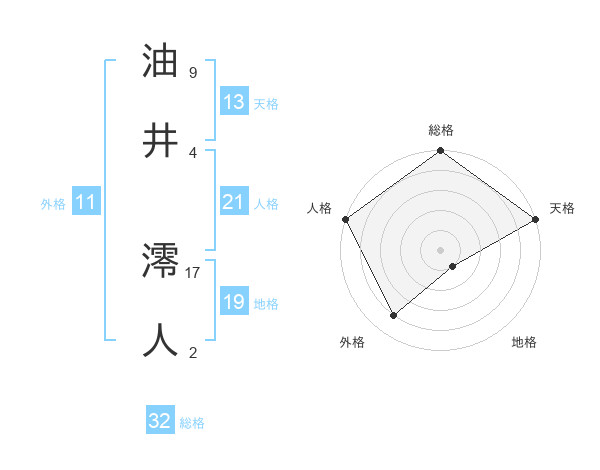 油井 澪人さんの総格は32画の5点!