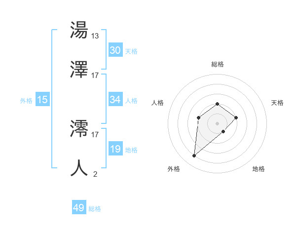 湯澤 澪人さんの総格は49画の2点!