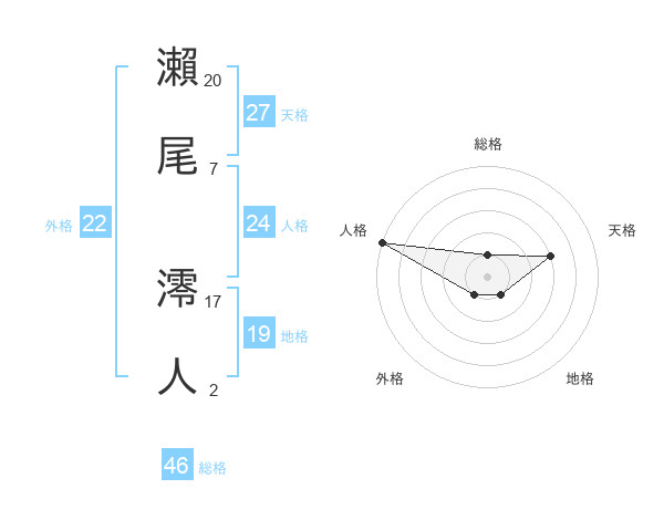瀨尾 澪人さんの外格は22画の1点!
