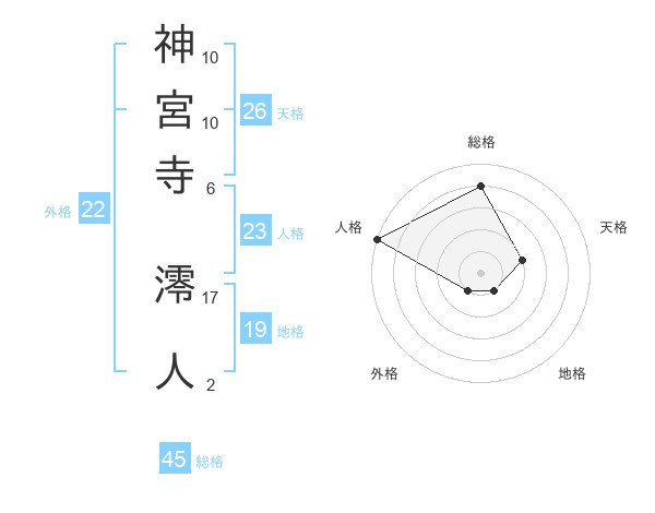 神宮寺 澪人さんの総格は45画の4点!