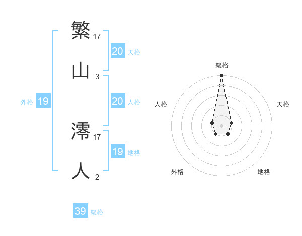 繁山 澪人さんの総格は39画の5点!