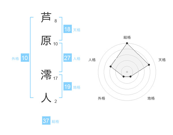 芦原 澪人さんを姓名の画数から五運を鑑定
