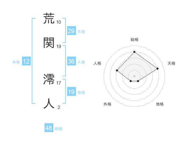 荒関 澪人さんの総格は48画の4点!