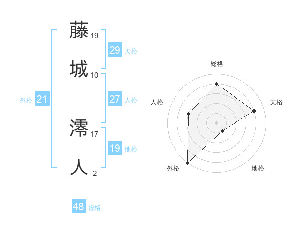 藤城 澪人さんの天格は29画の4点!