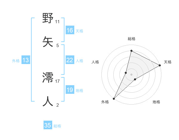 野矢 澪人さんを姓名の画数から五運を鑑定