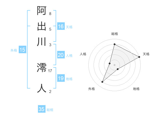 阿出川 澪人さんの総格は35画の4点!