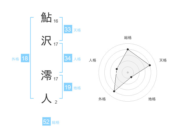 鮎沢 澪人さんの天格は33画の4点!