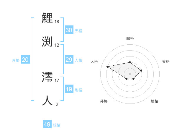 鯉渕 澪人さんの総格は49画の2点!