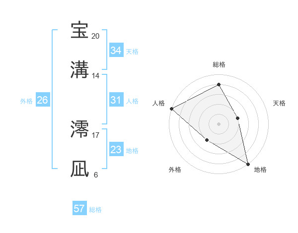 宝溝 澪凪さんの総格は57画の4点!