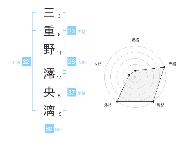 三重野 澪央漓さんの総格は60画の1点!