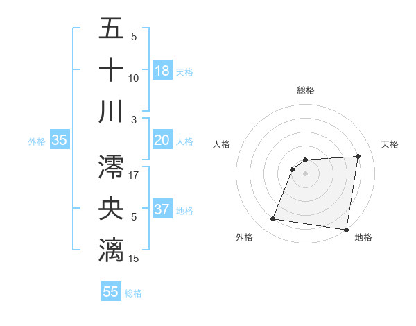 五十川 澪央漓さんを姓名の画数から五運を鑑定