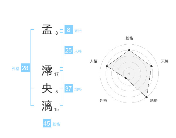 孟 澪央漓さんの総格は45画の4点!