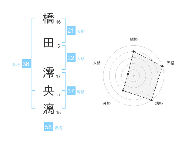 橋田 澪央漓さんを姓名の画数から五運を鑑定