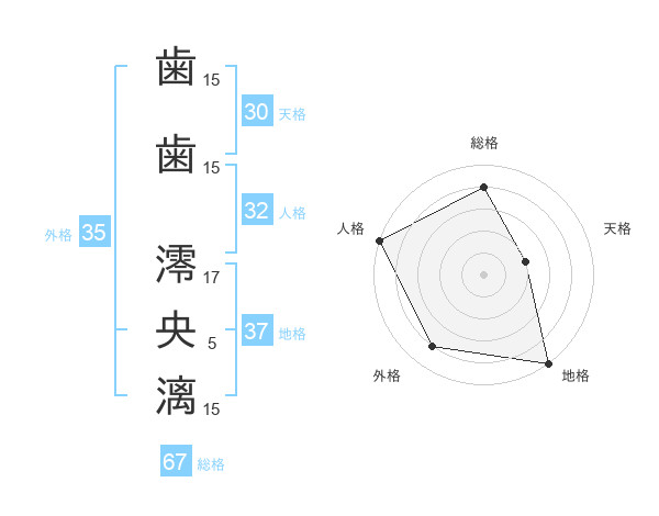 歯歯 澪央漓さんの外格は35画の4点!