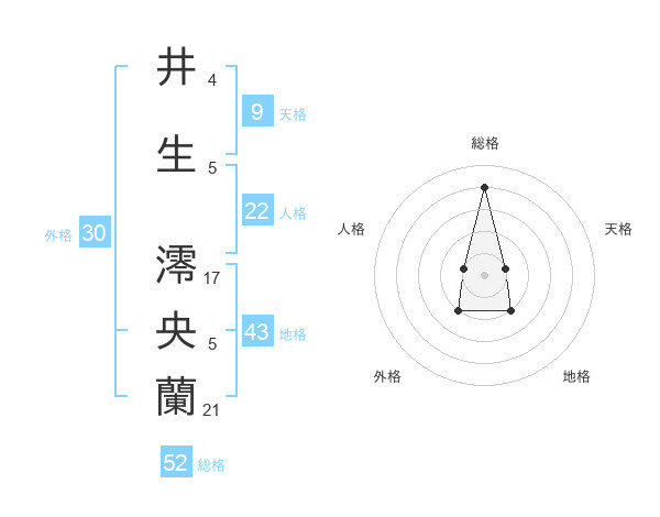 井生 澪央蘭さんの総格は52画の4点!