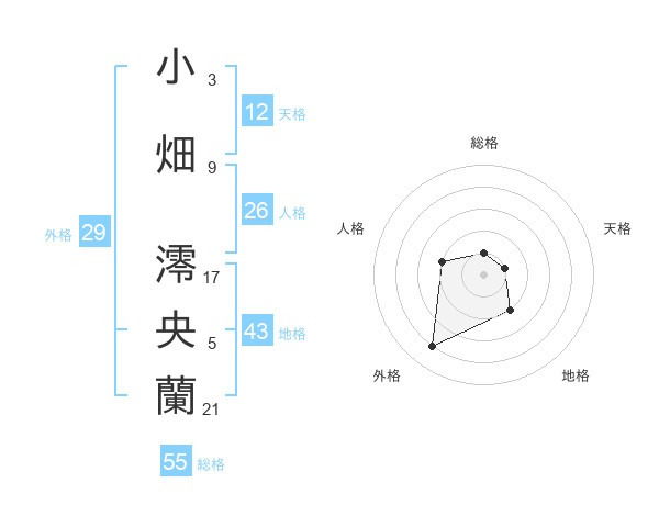 小畑 澪央蘭さんの総格は55画の1点!
