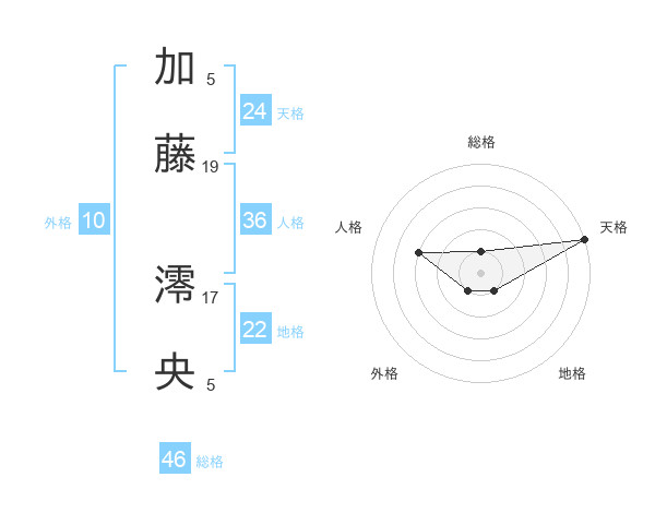 加藤 澪央さんの総格は46画の1点!