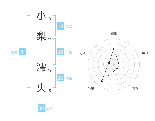 小梨 澪央さんの総格は36画の3点!