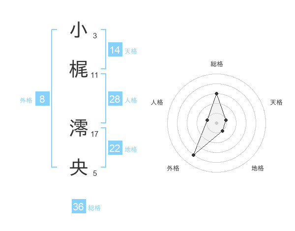 小梶 澪央さんの総格は36画の3点!