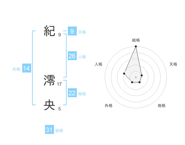 紀 澪央さんの総格は31画の5点!