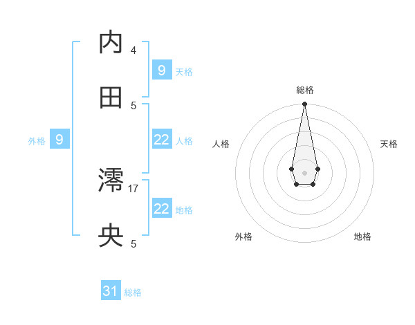 内田 澪央さんの総格は31画の5点!