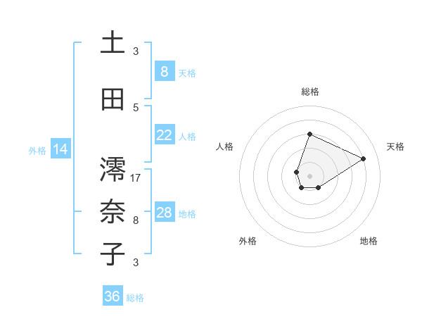 土田 澪奈子さんを姓名の画数から五運を鑑定