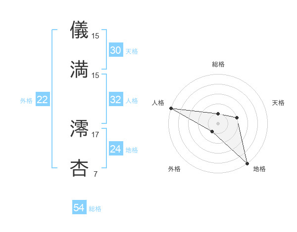 儀満 澪杏さんの総格は54画の1点!