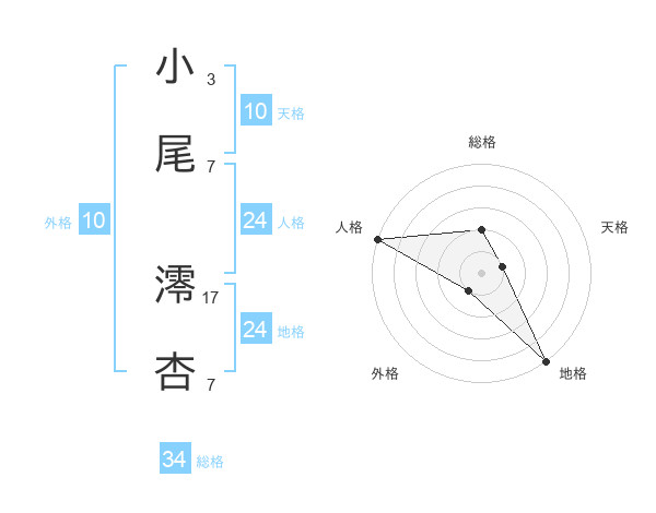 小尾 澪杏さんの総格は34画の2点!