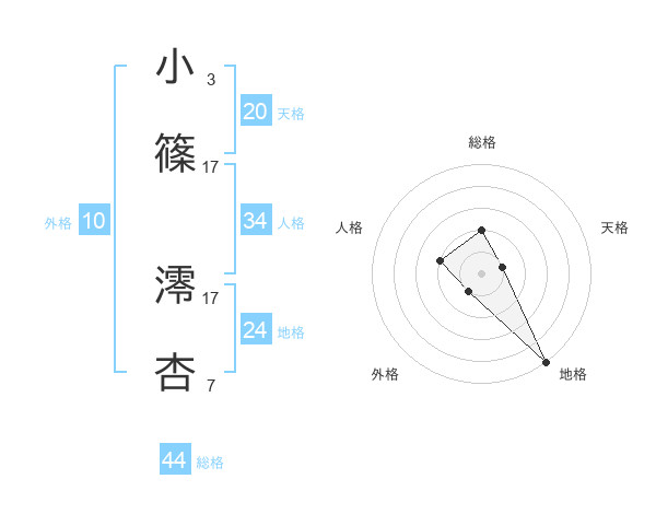 小篠 澪杏さんの天格は20画の1点!