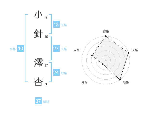 小針 澪杏さんの総格は37画の5点!