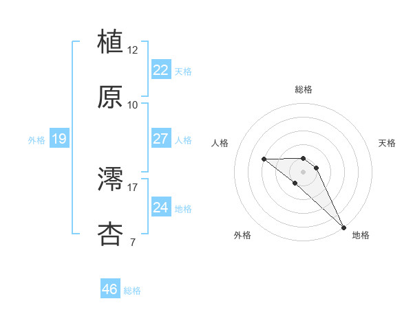植原 澪杏さんの地格は24画の5点!