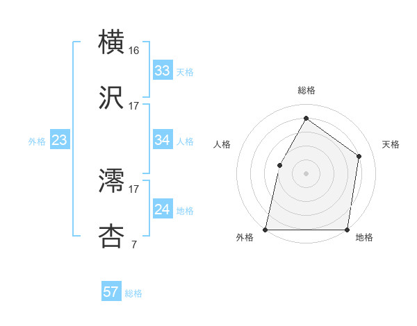 横沢 澪杏さんの総格は57画の4点!
